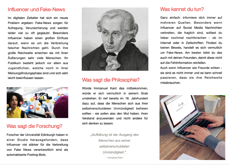 Frage nach dem Guten Handeln; Aufruf zu mehr Mündigkeit; Faltblatt; Grundkurs 11