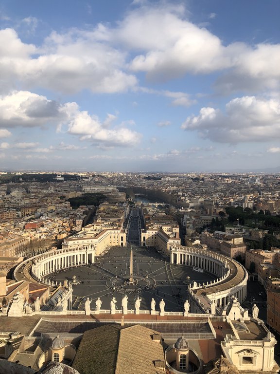 Der Höhepunkt dieser historischen Reise war der Eintritt in den Petersdom. Ein Schritt genügte und man war regelrecht umgehauen von diesem prachtvollen Kunstwerk von Gebäude. Wirklich ein beeindruckendes Bauwerk. Dort fanden sich dann auch einige Schülerinnen und Schüler der verschiedenen Gruppen wieder zusammen. Wer Lust hatte konnte auch noch auf die Kuppel des Petersdoms steigen und einen herrlichen Blick über die Stadt und den Vatikan genießen.