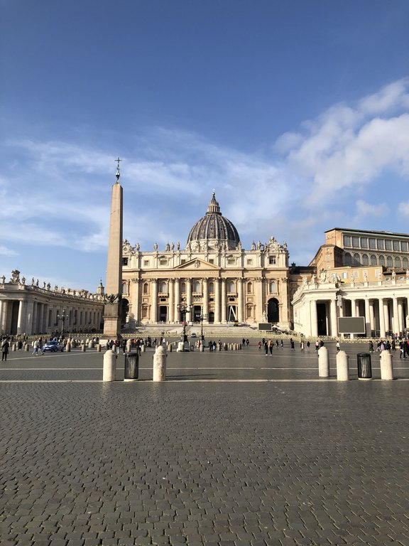 Heute waren wir so dreist und verließen das Land - es ging ab in den Vatikan. Der Petersplatz und die Vatikanischen Museen waren unser Ziel. Unsere große Gruppe musste in zwei kleinere eingeteilt werden, weil wir sonst zu groß für eine Führung gewesen wären. Somit wurden die zwei Gruppen zeitversetzt durch diesen Ort von Historie geleitet. (Jetzt kann ich nur noch für meine Gruppe sprechen). Gelenkt wurden wir von einer sehr netten und durchaus auch temperamentvollen Dame. Es war wirklich sehr unterhaltsam, da sie jeden Schüler und jede Schülerin versucht hat in ihre Reise zu integrieren. Wir hatten die Aufgabe, Statuen oder Gemälde im vatikanischen Museum nachzustellen, womit der Spaßfaktor definitiv gegeben war. Auf diese Art und Weise war die gesamte Schülerschaft stets aufmerksam und interessiert bei der Sache. Nachdem uns unsere Reiseführerin so engagiert durch das Museum geführt hat, bedankten sich die Thomaner mit Gesang und Klang. Am Ende dieser Führung stand noch die Sixtinische Kapelle, die einem wirklich den Atem raubte.